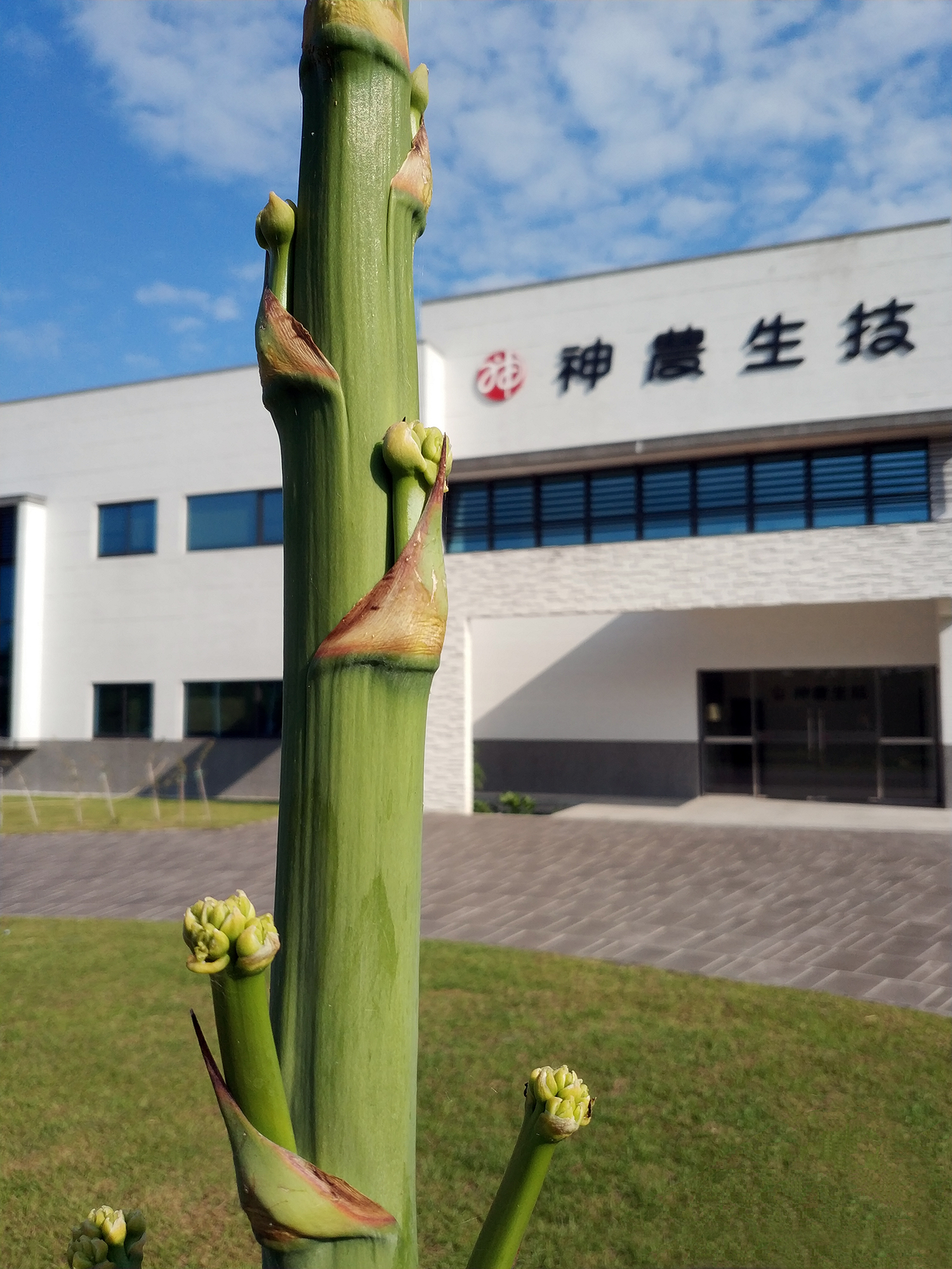 因為從生長到開花需要極為漫長的時間等待,所以龍舌蘭開花可說是難得一見,而神農生技就種植了3株龍舌蘭,在我們細心的灌溉栽培之下,其中一株龍舌蘭終於冒出花苞了!