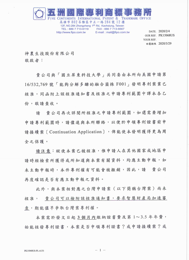 從野外篩選、功效確認,到後來使用原生質體融合技術,並繼續篩選出功能更強大的益生菌株。耗時9年,神農生技的融合菌株終於正式獲得美國專利。