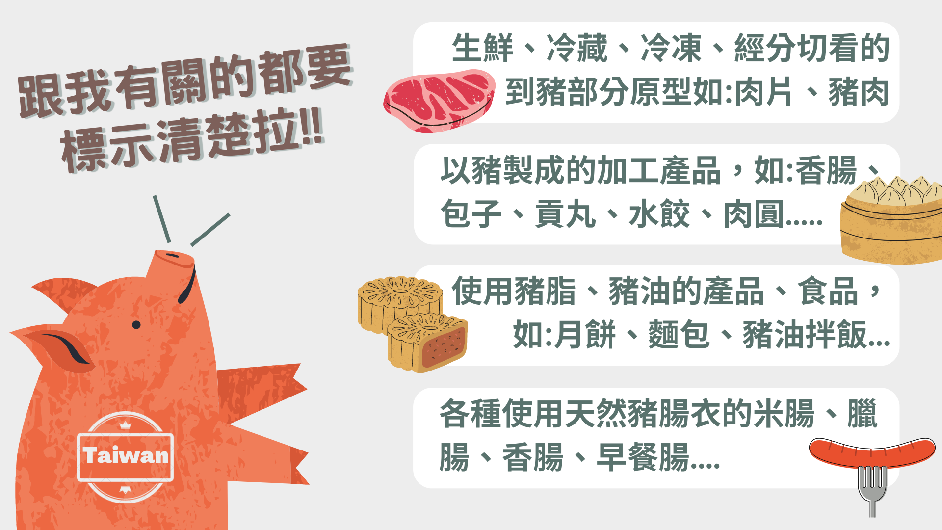 關於明年開始的豬肉食品產品標示,小編為大家整理了一份懶人包,希望大家看完之後,無論是生產者、加工廠、餐廳、攤商或是消費者,都能對法規有更清楚的認識!