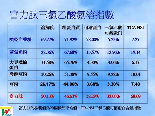 • 關於小肽產品中小肽含量的確定,可使用三氯乙酸氮溶指數(TCA—NSI),三氯乙酸是一種蛋白質沈澱劑,它可以沈澱蛋白質和較長的肽段。三氯乙酸氮溶指數可以準確地反應蛋白質的酶解情況,溶解指數越高,表明小肽的含量越高...