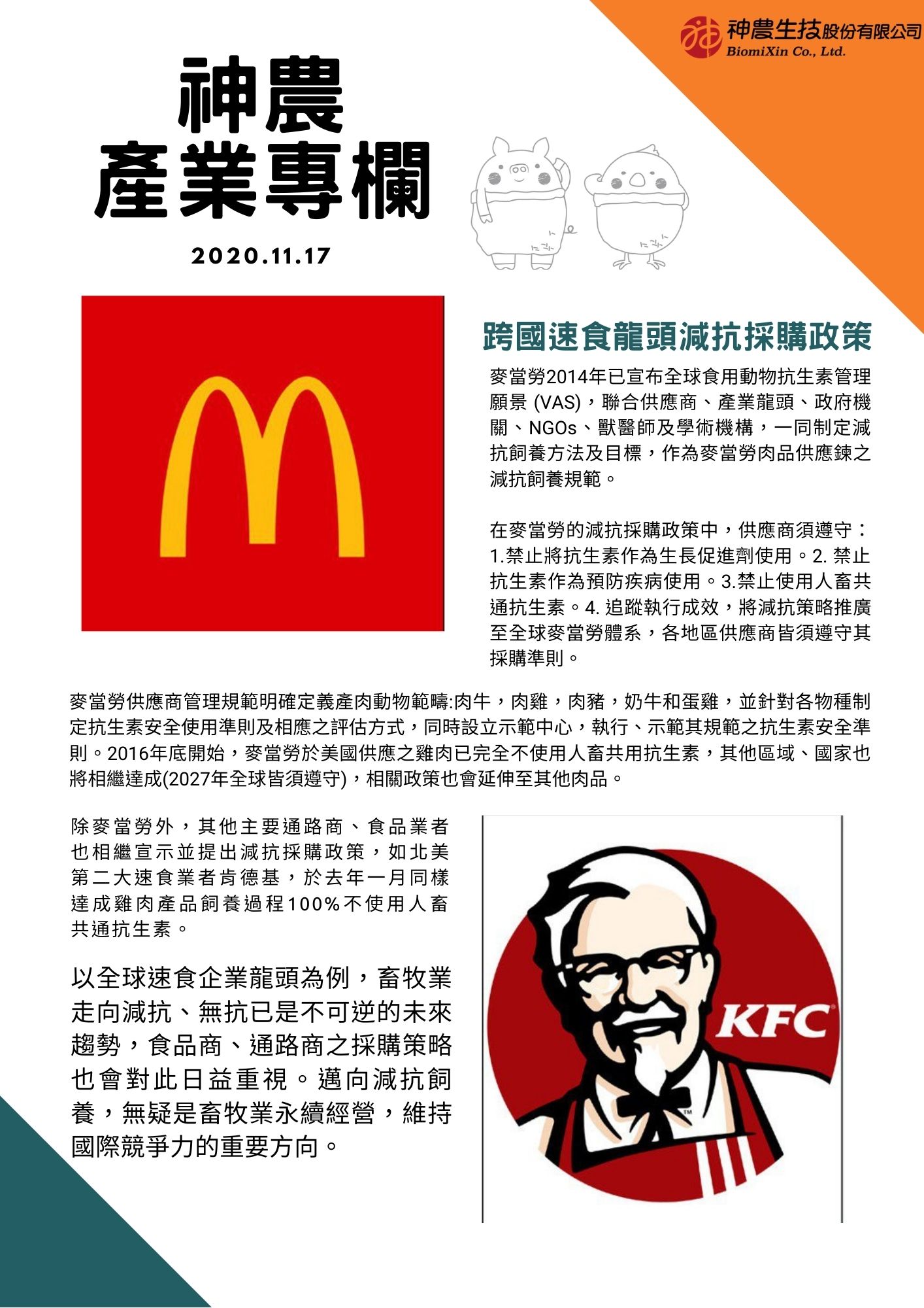 神農產業專欄NO.1-跨國速食龍頭減抗採購政策
