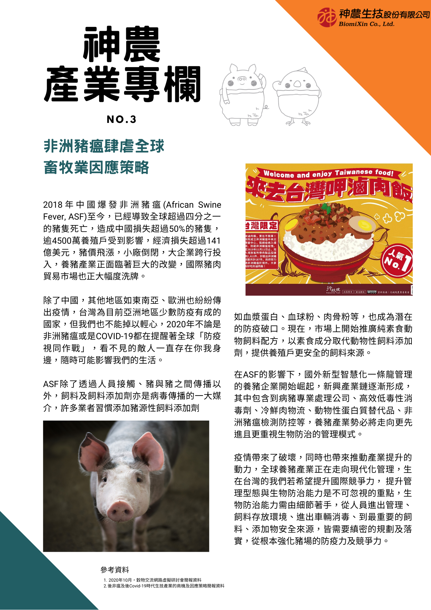 神農產業專欄No.3-非洲豬瘟肆虐全球畜牧業因應策略