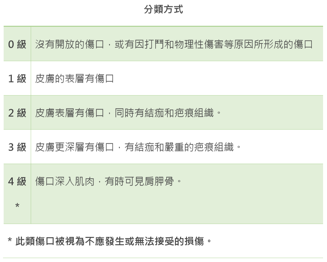 ➲ 如果母豬有1~2級的肩部潰瘍,必須及時介入處理,如果母豬有3~4級的肩部潰瘍則安樂死是唯一的解決途徑,以避免母豬承受非必要的痛苦。(譯註:此建議按照BPEX原文翻譯,譯者個人認為BPEX主要強調應全力避免肩部潰瘍惡化到3或4級,因為嚴重程度的肩部潰瘍對母豬的傷害非常大)