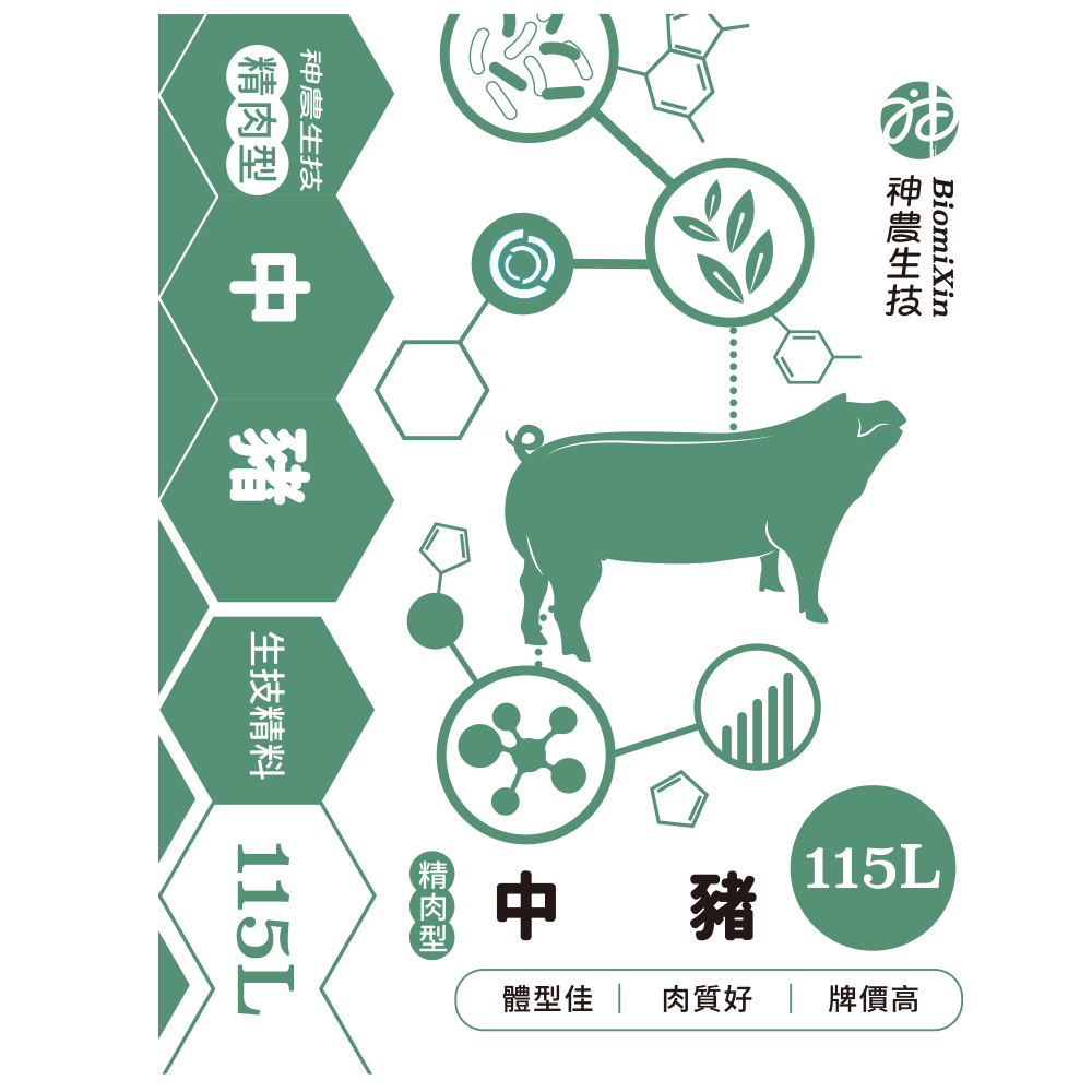 ◎搭配仔豬精料114S使用,可延續發揮最大瘦肉生長潛能