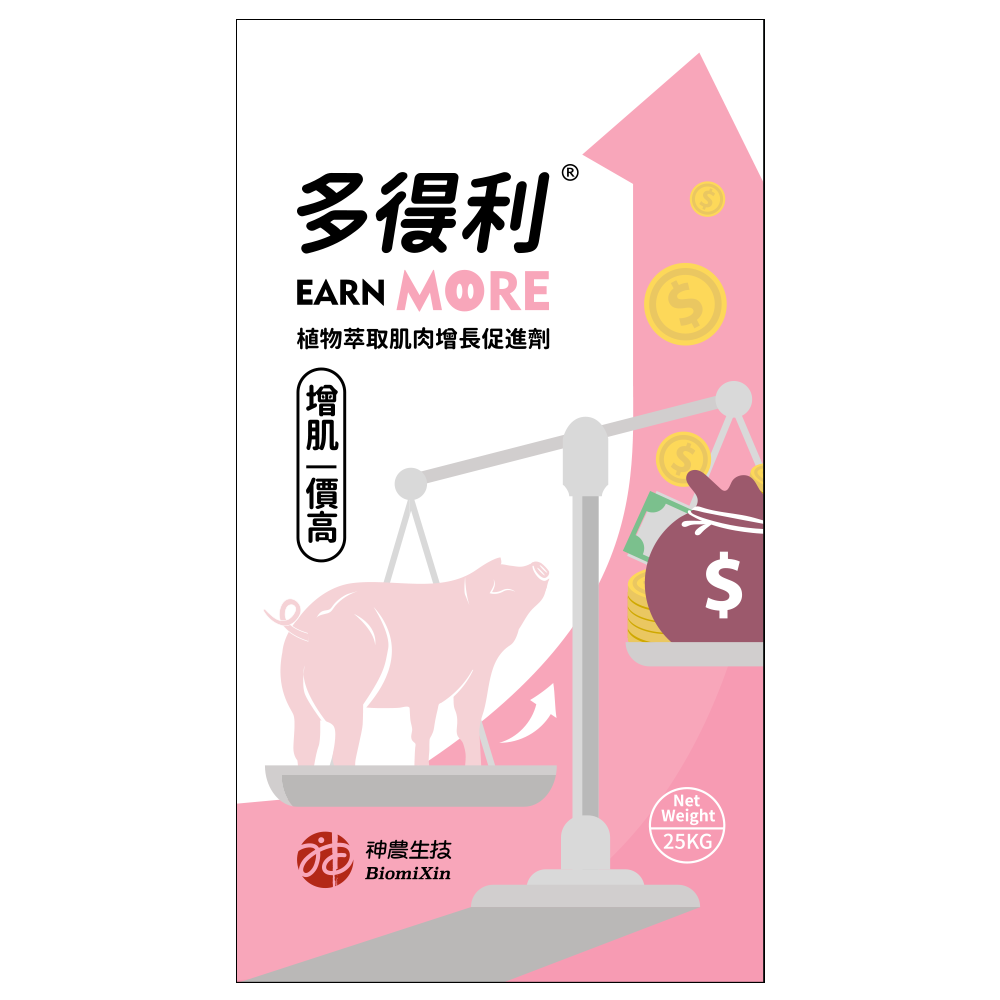 使用方法: 仔豬、肉豬使用 於每噸飼料添加產品1.5公斤 包裝: 25 kg/袋 增重快 | 體型好 | 牌價高 以天然植物萃取物及美國專利益生菌株, 提升蛋白質消化及胺基酸利用, 增加蛋白質合成,使豬隻增重快、體型佳, 提升上市重量及牌價,增加飼主收益。